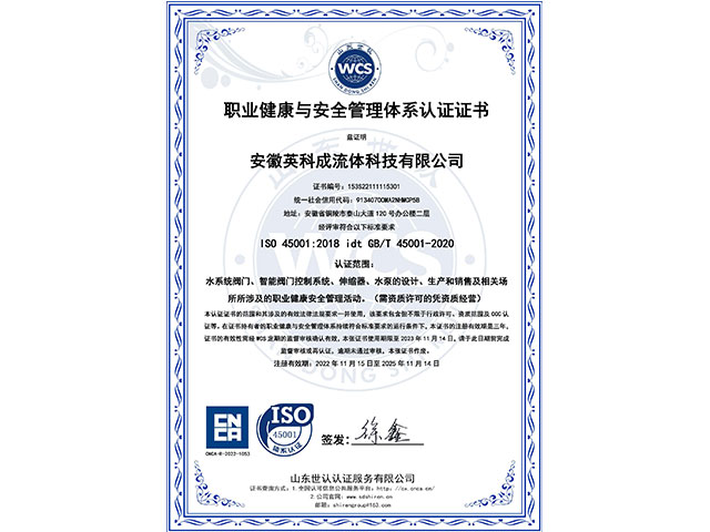 安徽英科成流體科技有限公司位于黃山腳下長江之濱的中國古銅都-安徽省銅陵市。公司注冊資金1.1億,是國內一家專業致力于給排水行業系統解決方案、閥門以及智能閥門技術研發與生產銷售服務為一體的企業。 我們擁有完善的質量控制體系和檢測設備,公司主要的產品有閘閥、蝶閥、偏心半球閥、液控蝶式止回閥、靜音止回閥、橡膠瓣止回閥、活塞式流量調節、錐型閥、節能型泵控閥、倒流防止器、減壓閥、排氣閥、排泥閥、伸縮器、閘門、啟閉機等二十多個系列,可以充分滿足客戶的一站式需求�!�